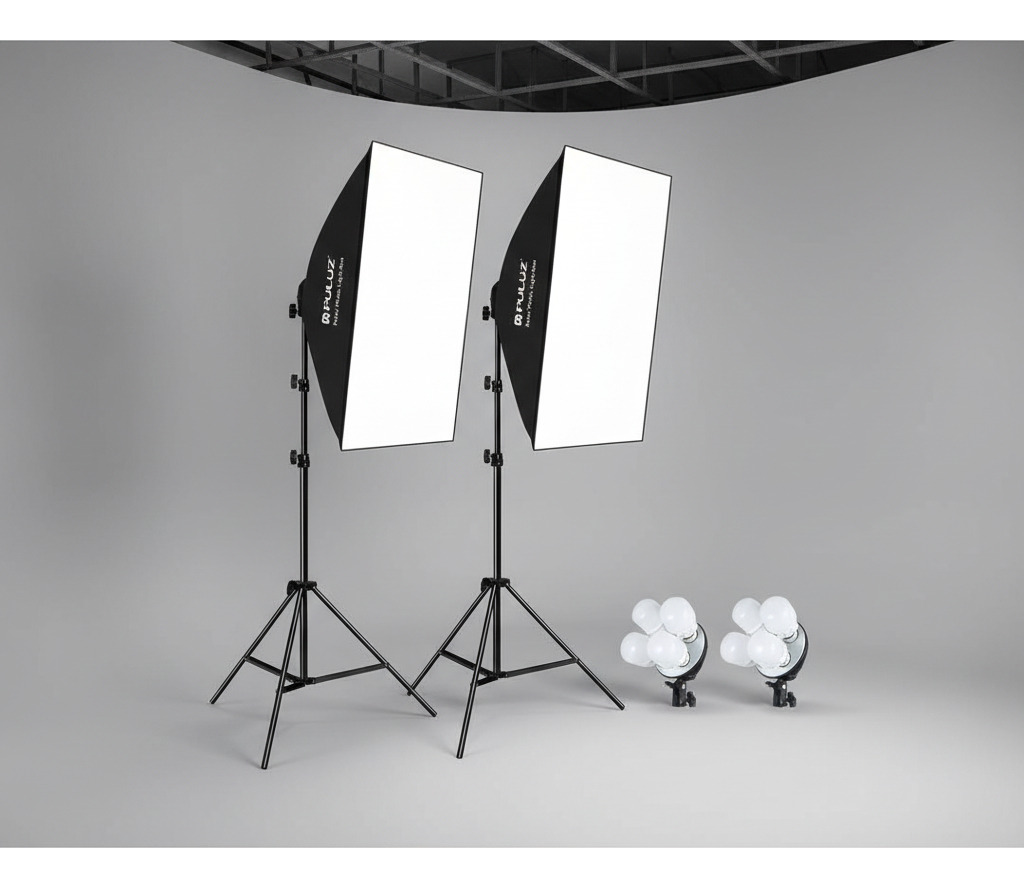 - 2 Softbox 50×70 cm con fondo blanco difusor para luz suave.
